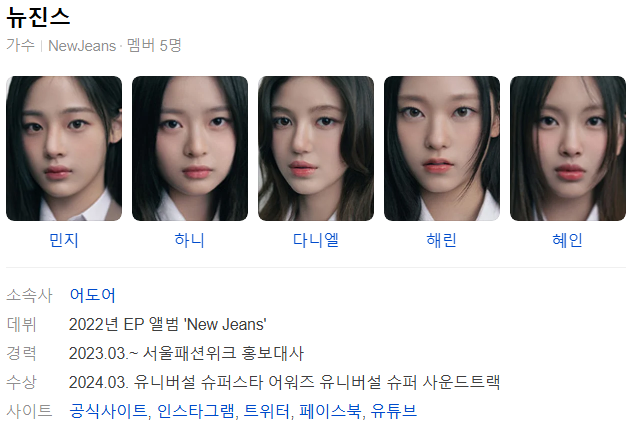 뉴진스(Newjeans) 멤버 프로필 국적 인기순위_240506 본문