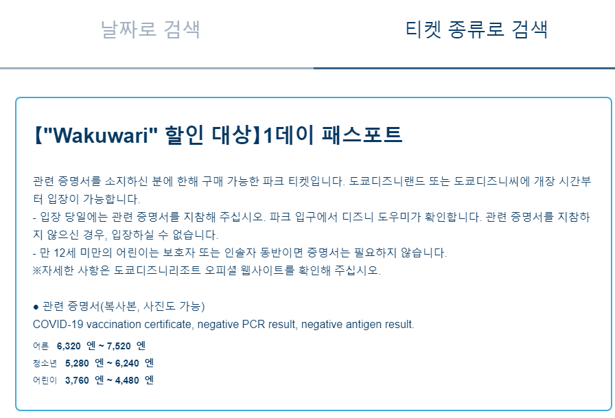 코로나 백신 증명서 , PCR음성결과서등을 제시해야하고 할인을 받을수 있습니다.