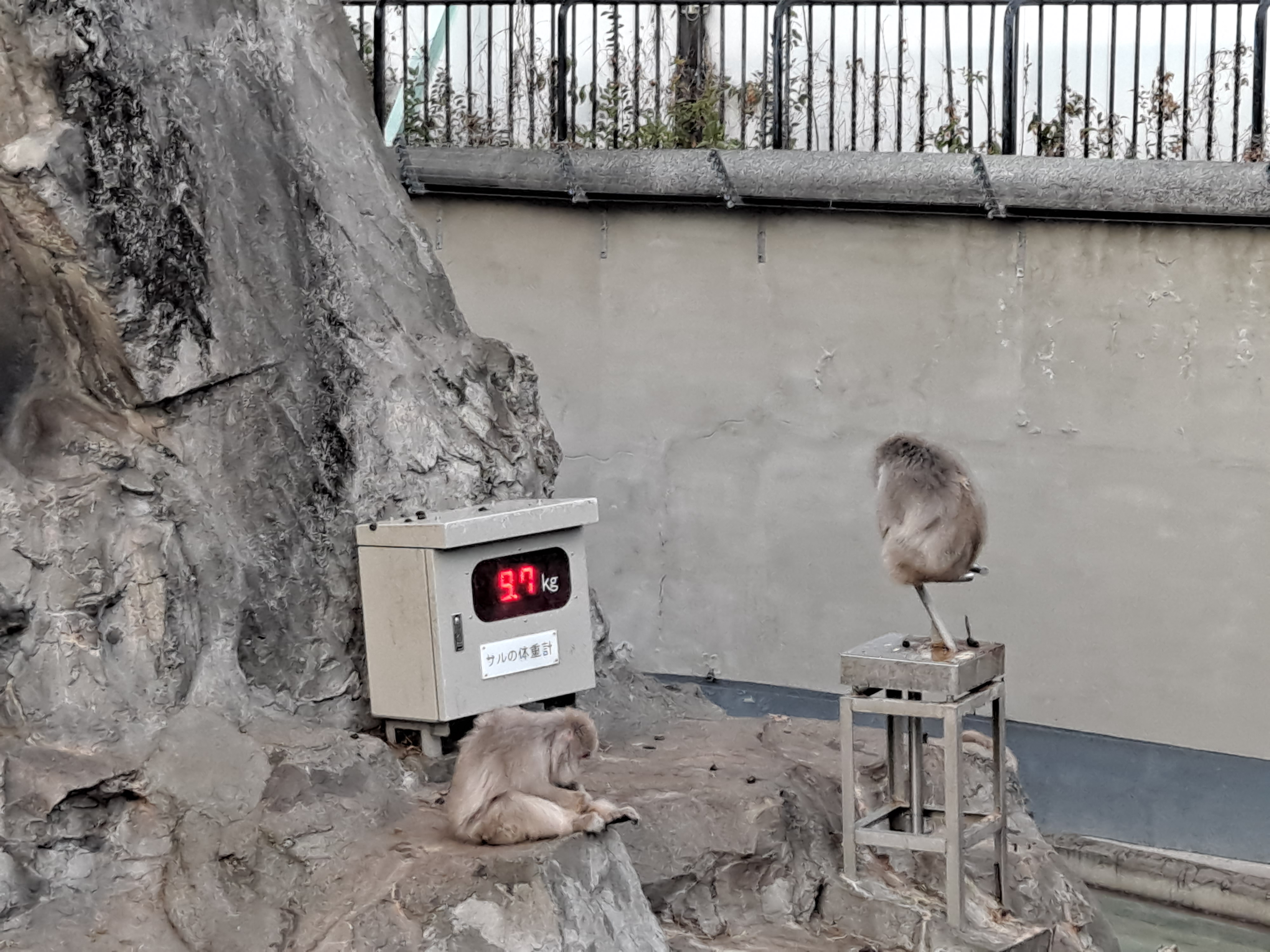 침팬지가 몸무게를 재고 있네요..ㅎㅎ