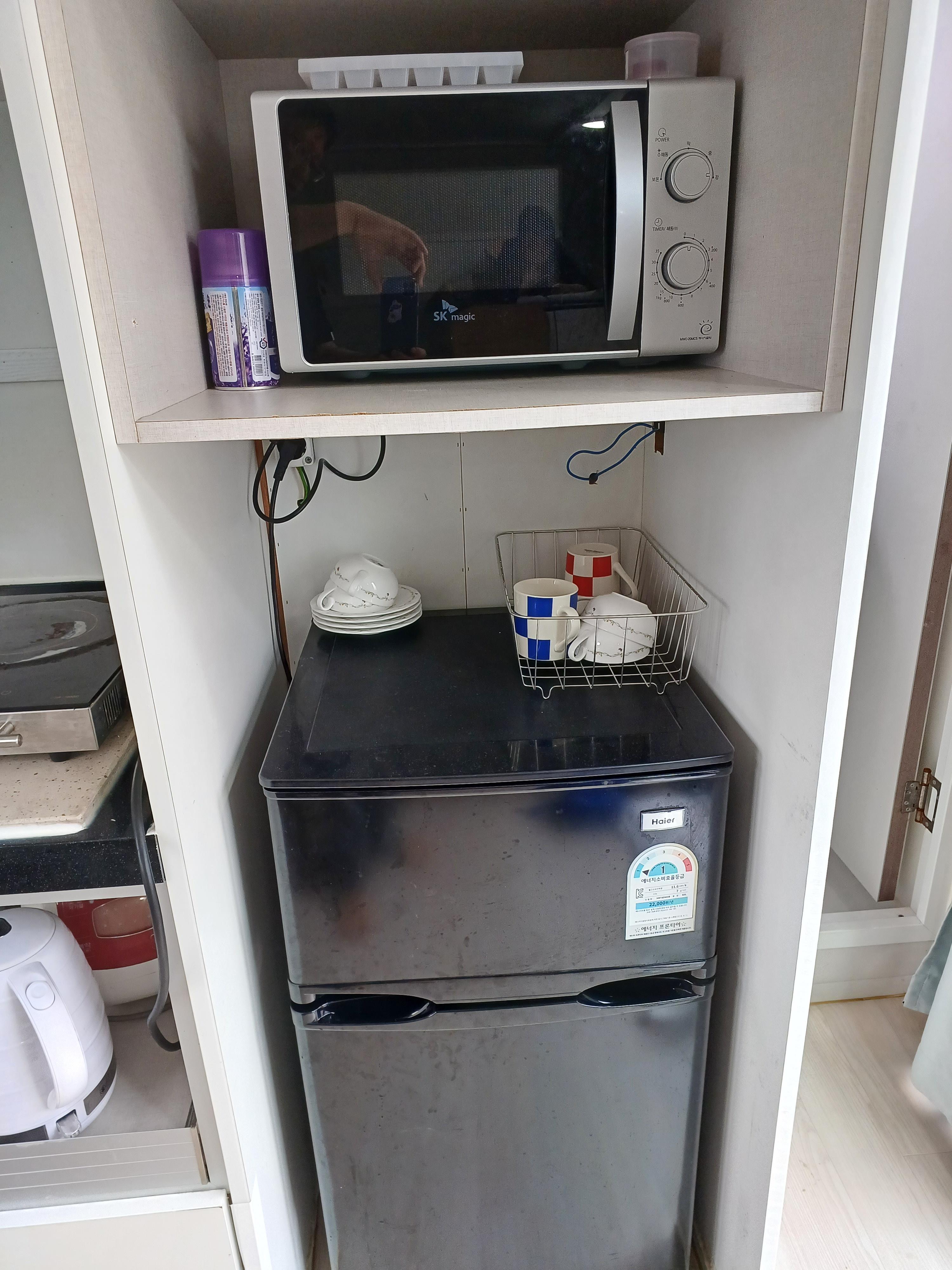 주요 시설로는 드라이기, 전자렌지, 냉장고, 밥솥, 커피포트등 왠만한건 다 구배되어 있었습니다.